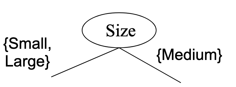 Note that when splitting ordinal attributes, we still have to respect the intrinsic ordering.